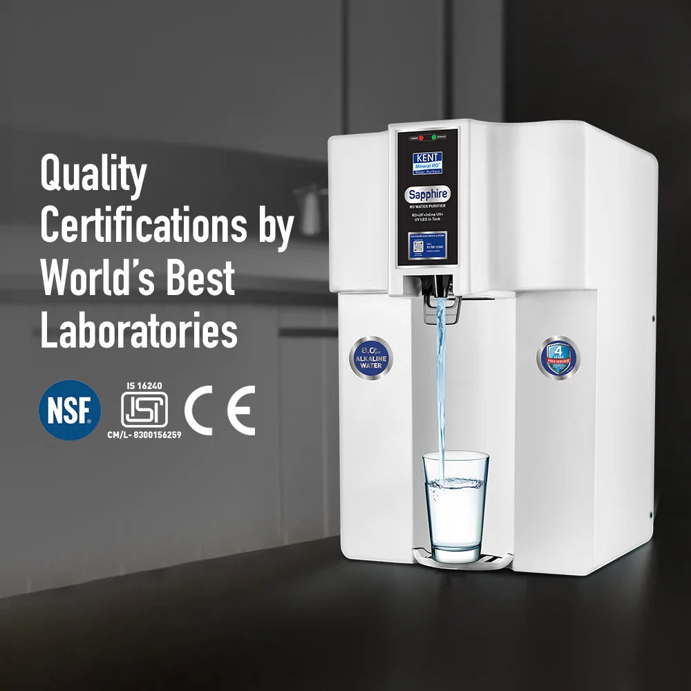 Kent Sapphire RO Water Purifier 8L RO+UF+Lnline UV+Alkaline+TDS Control+UV in Tank White (111165)