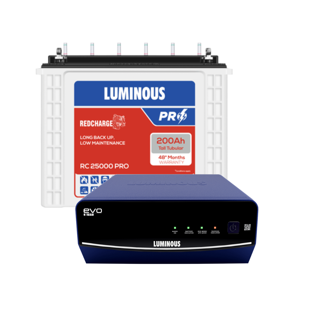 Luminous EVO S 1550 12Volt Inverter with RC25000 Pro 200Ah Tubular Battery Combo