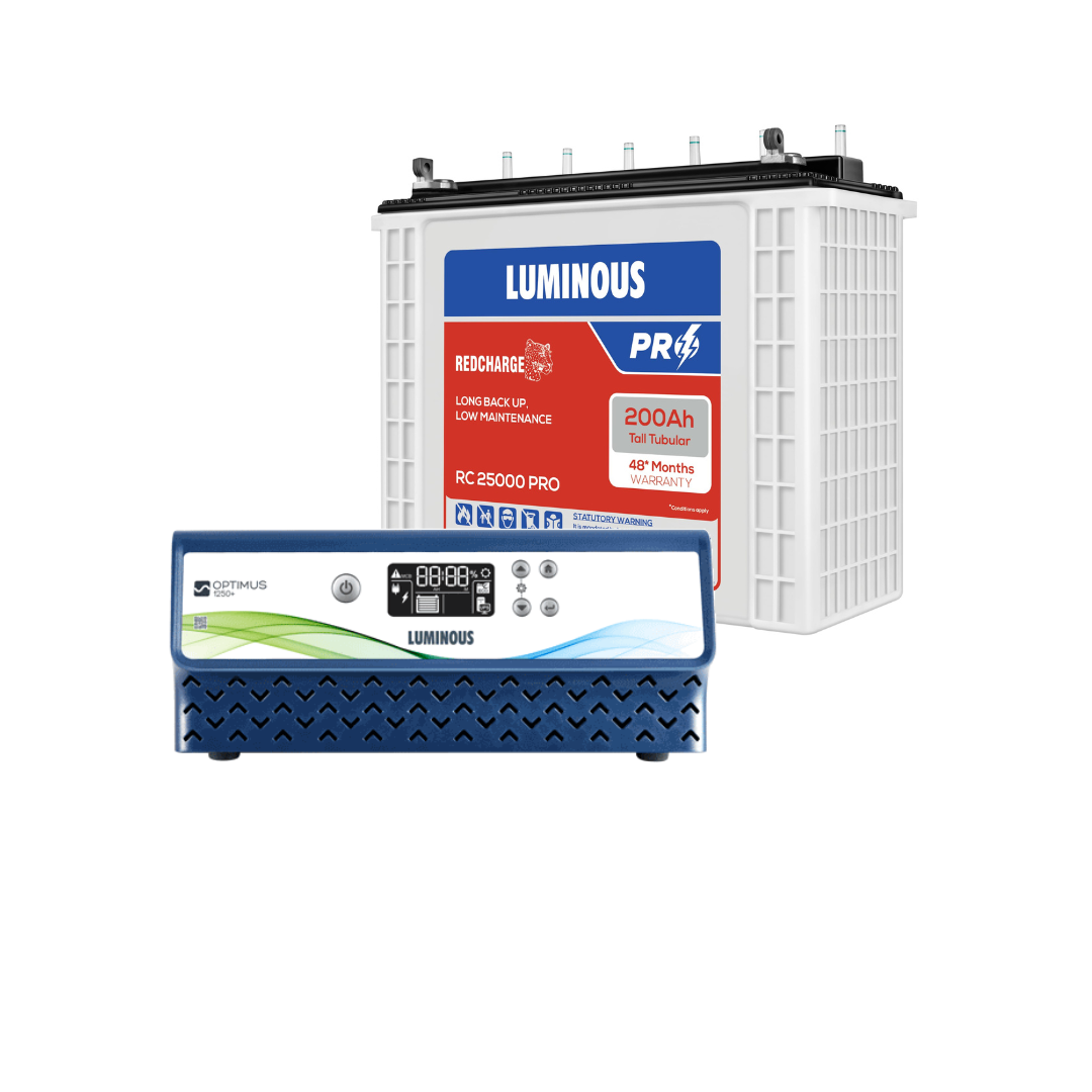 Luminous Optimus 1250 12Volt Inverter with RC25000 Pro 200Ah Tubular Battery Combo