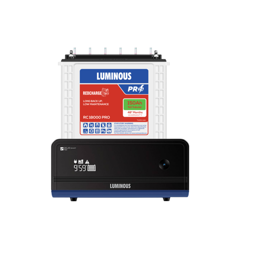 Luminous Zelio Smart 1100 Inverter with RC18000 Pro 150Ah Tubular Battery Combo